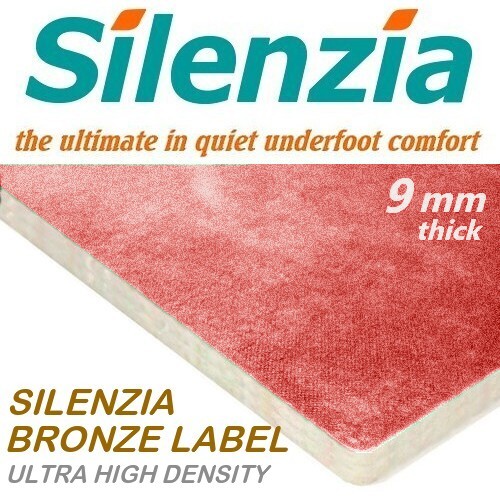 SILENZIA BRONZE - With an Ultra High Density foam core and a non-woven top and bottom surface, this 9mm thick underlay is suitable for all domestic applications, has excellent impact sound reduction and thermal insulation properties. Guaranteed for the lifetime of your new carpet.